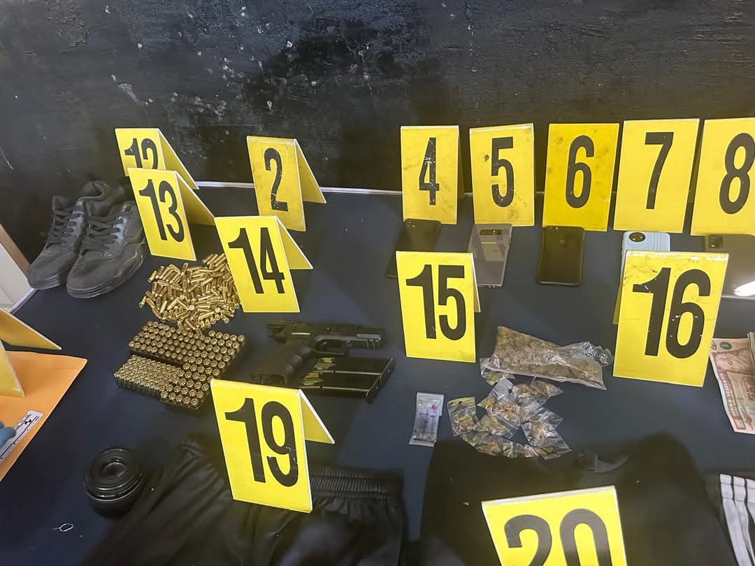 Dentro del inmueble localizaron una pistola que habría sido robada en diciembre del 2024 en un área de zona 15, chalecos tácticos con insignias de la PNC, municiones de diferentes calibres, bolsas con marihuana, dinero en efectivo y dos motocicletas con reporte de robo.