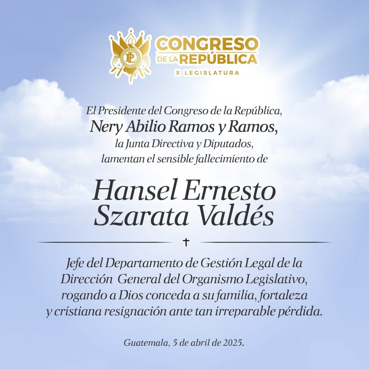 La Policía Nacional Civil (PNC) confirmó que durante la madrugada de este sábado 5 de abril fue asesinado a balazos Hansel Ernesto Szarata Valdés, quien se desempeñaba como Jefe de Gestión Legal en la Dirección General del Organismo Legislativo.