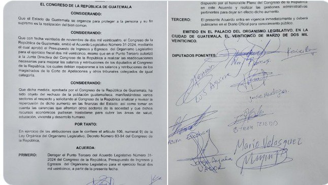 abril 22, 2025A escasos días de que los legisladores reciban nuevamente su salario, la expectativa sobre el aumento que está contenido en el acuerdo legislativo 31-2024 crece esto debido a que, pese a los ofrecimientos de no recibir dicho aumento, la derogación de este acuerdo aún no ha sido concretada.
