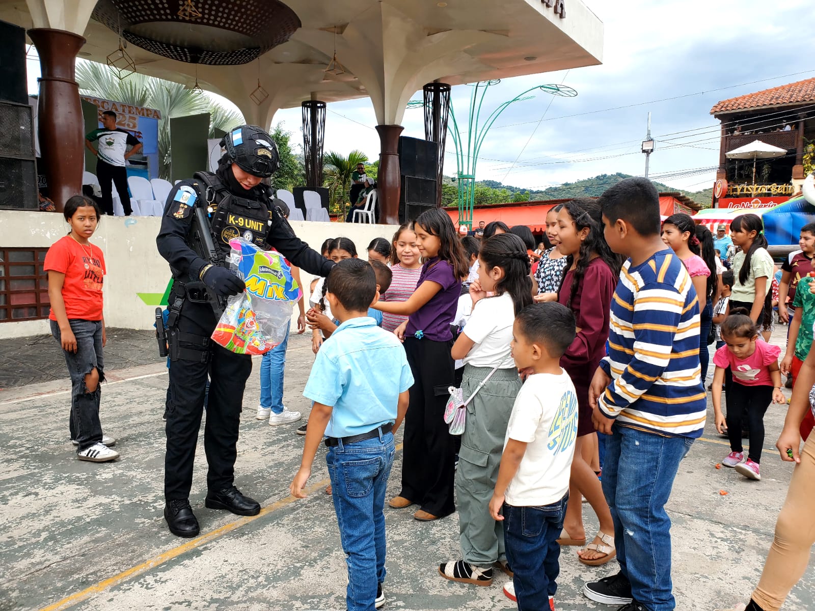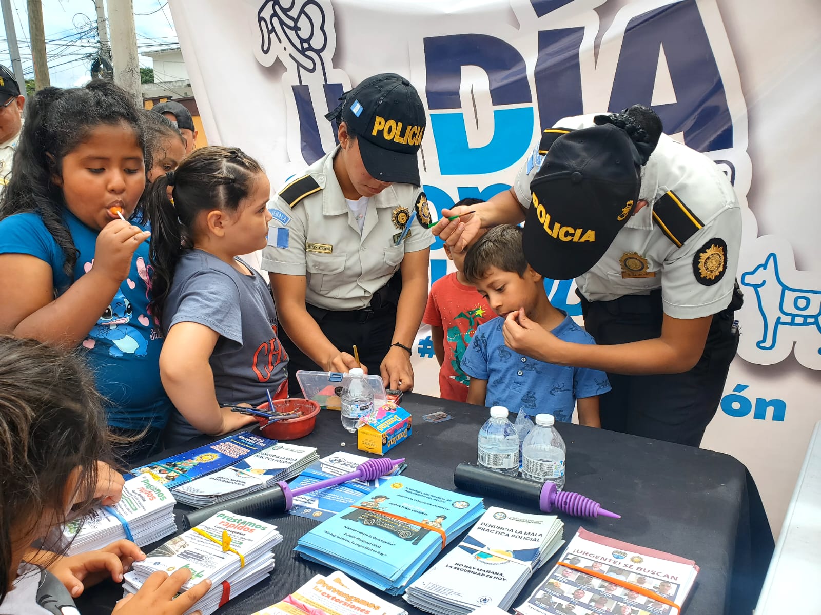 La actividad contó con la participación de los personajes Polito y Polita, y forma parte del compromiso de la PNC de acercarse a la comunidad y prevenir el delito.