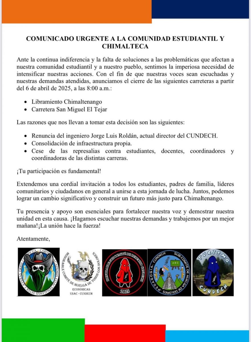 Los organizadores hacen un llamado a estudiantes, padres de familia, líderes comunitarios y ciudadanía en general a sumarse a esta jornada de lucha, con el fin de lograr un cambio positivo para la comunidad de Chimaltenango.