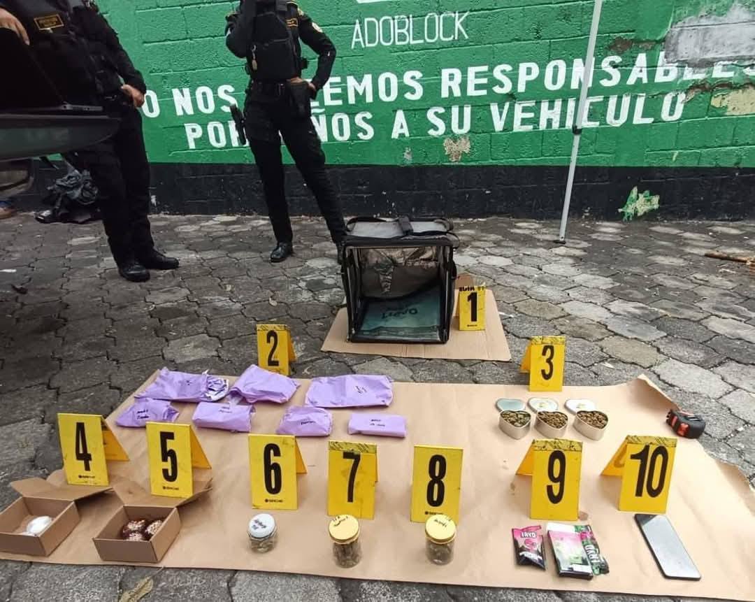 El operativo de captura se realizó en la 35 calle y 11 avenida, colonia Las Charcas, zona 11 capitalina, donde fue sorprendido con una motocicleta y varios recipientes con diferentes tipos de droga. Entre lo incautado se encontraron: fragmentos de cristal (metanfetamina), marihuana en recipientes, gomitas y brownies, así como un cigarrillo electrónico con aceite de marihuana y un teléfono celular que utilizaba para contactar a estudiantes.