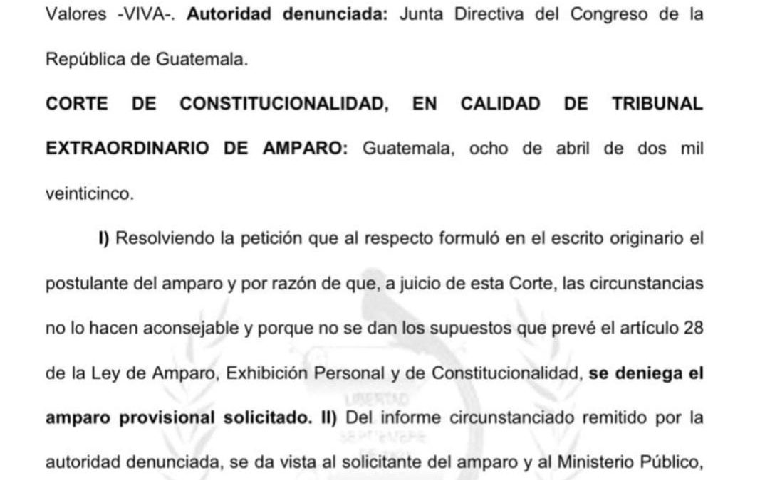 La acción legal interpuesta por el excandidato presidencial Armando Castillo, fue rechazada. Así lo dio a conocer el día de hoy la Corte de Constitucionalidad (CC), […]