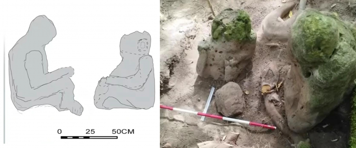 Uno de los hallazgos más emblemáticos son dos figuras de piedra de aproximadamente un metro de altura, sentadas sobre un altar. Representan a una pareja ancestral y han dado nombre al sitio. “Ya tenemos dos ejemplos de este culto que consideramos es un culto ancestral y que podrían representar progenitores o el origen de la humanidad o el origen de las familias o clanes del mismo sitio”, explicó Milan Kovac, arqueólogo eslovaco y director del proyecto. Las figuras carecen de rasgos faciales definidos.