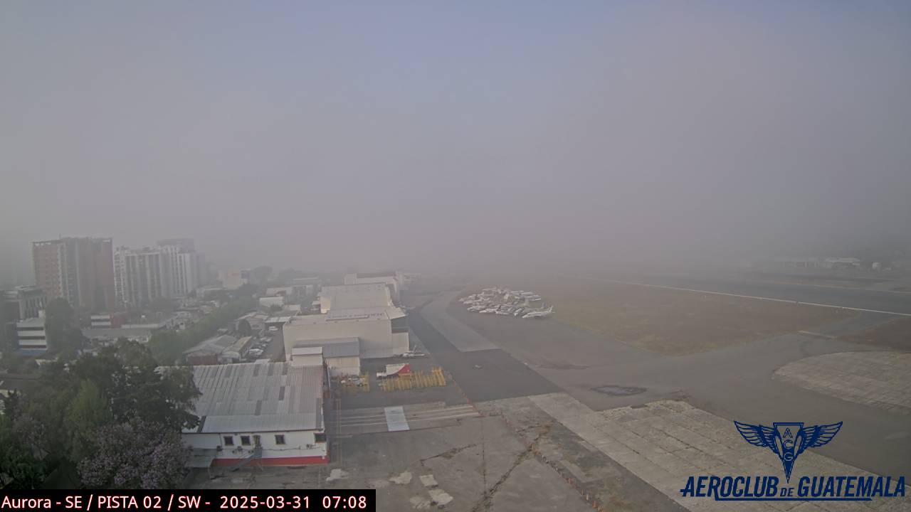 La Dirección General de Aeronáutica Civil (DGAC) informó a Quetzal TV que este lunes 31 de marzo, la Torre de Control del Aeropuerto Internacional la Aurora mantiene alerta verde desde las 5:00 am debido a las condiciones climáticas del país (densa neblina).