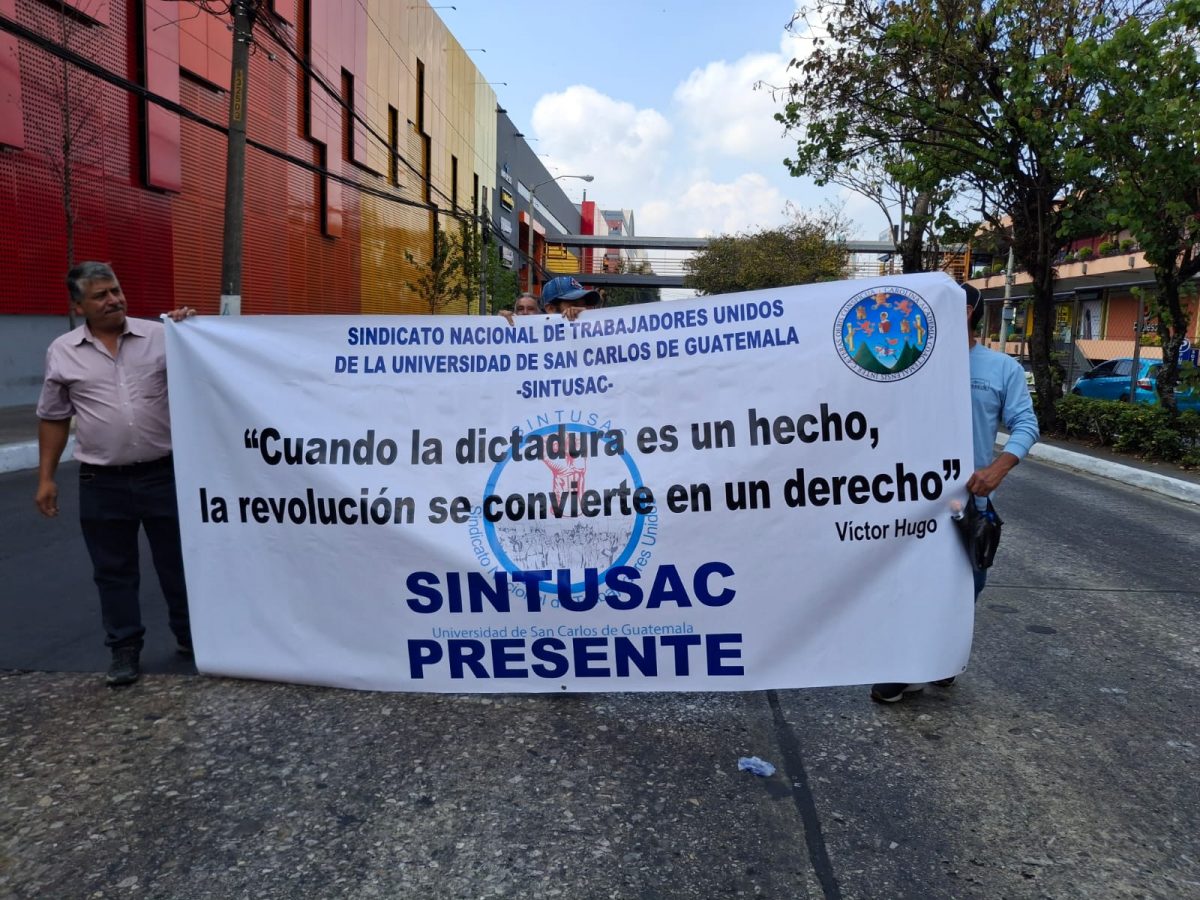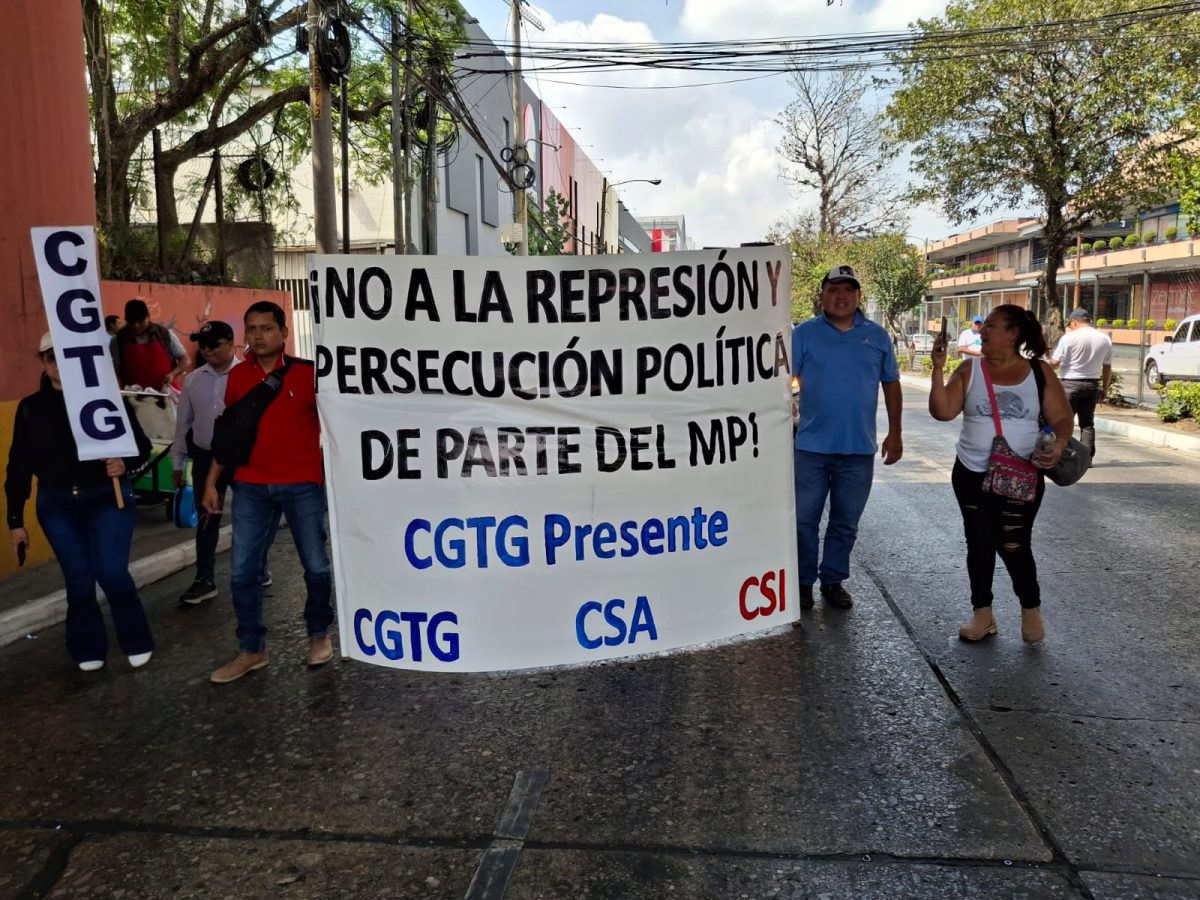 Varios sindicalistas portaban pancartas en las cuales criticaron y manifestaron el rechazo al aumento salarial de los diputados, la represión y persecución política por parte del Ministerio Público (MP), así como el trabajo de la fiscal general y jefe del MP.