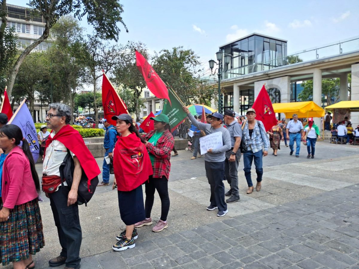 El recorrido concluyó frente al Palacio Nacional donde varios sindicalistas manifestaron de forma pacífica las solicitudes al presidente Arévalo.