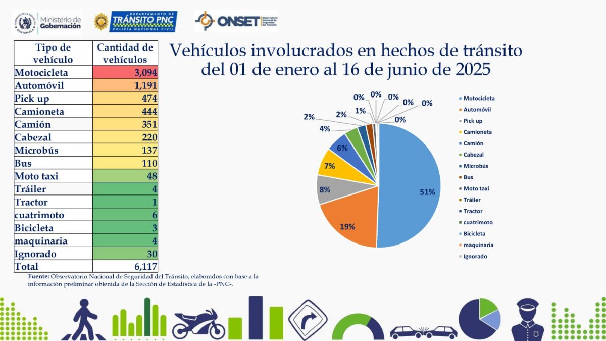 Esto refleja un incremento del 4.6% en comparación con el 2024. Así como, según datos del Departamento de Tránsito de la PNC hasta el 16 de junio se reportaban 1109 fallecidos que reflejan un 4.5% de incremento contra el 2024.