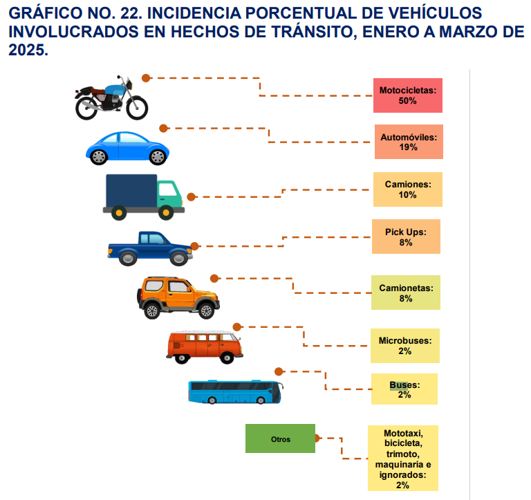 Uno de los tramos con mayor registro de accidentes es la CA-01 Occidente, conocida como Ruta Interamericana. En 2024 se documentaron 498 hechos de tránsito en esa vía. Para abril de 2025, ya se acumulaban 154 incidentes más. Fue allí donde ocurrió el accidente del 17 de junio en Tecpán.
