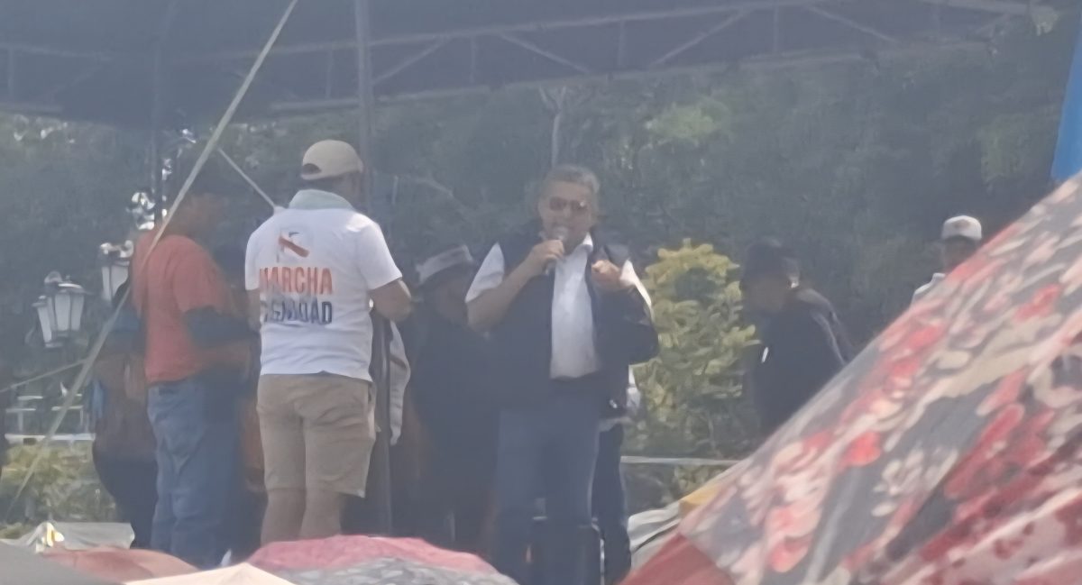 Joviel Acevedo, secretario general del STEG se pronuncio ante las acusaciones de los daños al Palacio Nacional de la Cultura mencionando que el edificio tiene un deterioro de años. «Nos acusan aquí del Palacio Nacional de la Cultura que esta todo deteriorado desde hace años, pero nadie dice que ellos le pegaron fuego al Congreso de la República, allí estaba encabezando Bernardo», mencionó Acevedo durante su discurso en la manifestación del lunes 21 de julio en la Plaza de la Constitución.