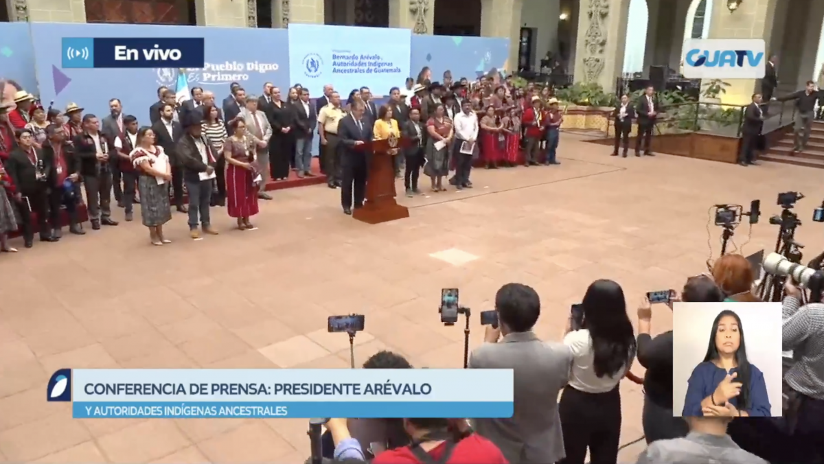 El presidente de la República de Guatemala, Bernardo Arévalo, en conferencia de prensa junto a representantes de los pueblos indígenas y su gabinete de Gobierno, reiteró su rechazo a las capturas de Luis Pacheco y Héctor Chaclán; además de calificarlas como una agresión a los cuatro pueblos indígenas.