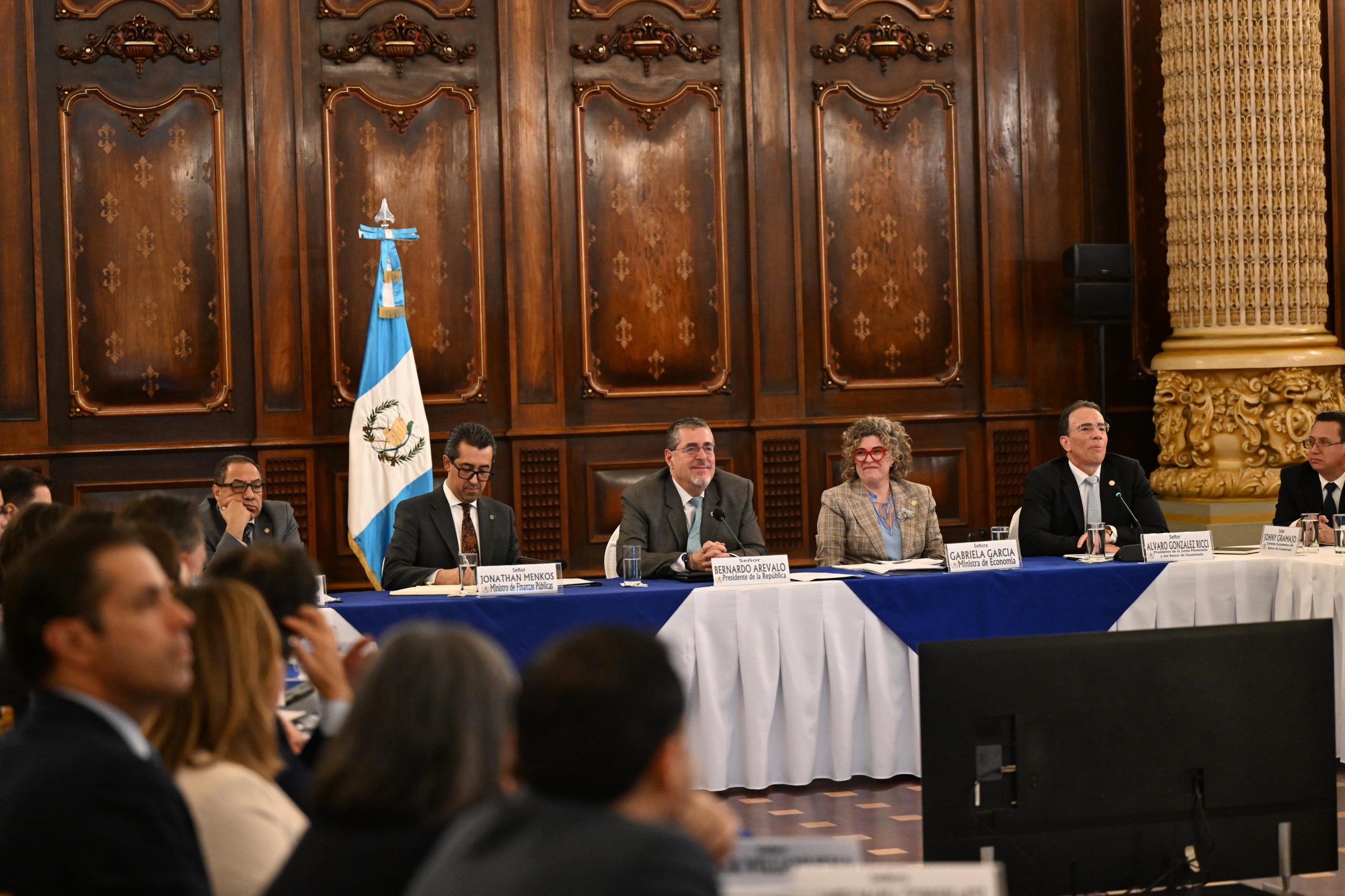 El presidente Bernardo Arévalo y miembros de su gabinete se reunieron este martes con representantes del sector empresarial para abordar la reciente imposición de un arancel del 10 % a las exportaciones guatemaltecas por parte del gobierno de Estados Unidos.