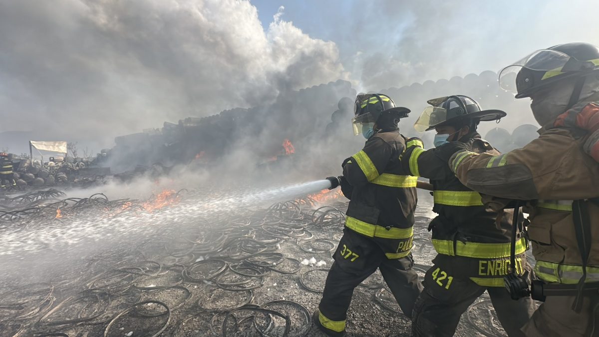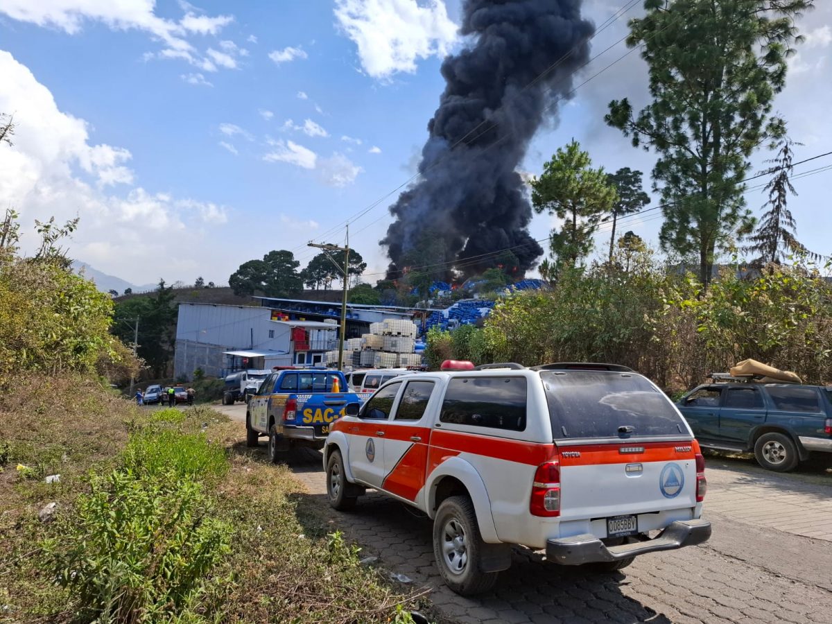 Un incendio de grandes proporciones consume una bodega de venta de productos plásticos y recicladora en la Aldea Las Flores, Sumpango, Sacatepéquez. Las llamas, reportadas alrededor de las 13:20 horas, han movilizado a cuerpos de socorro que trabajan intensamente para sofocar el siniestro.