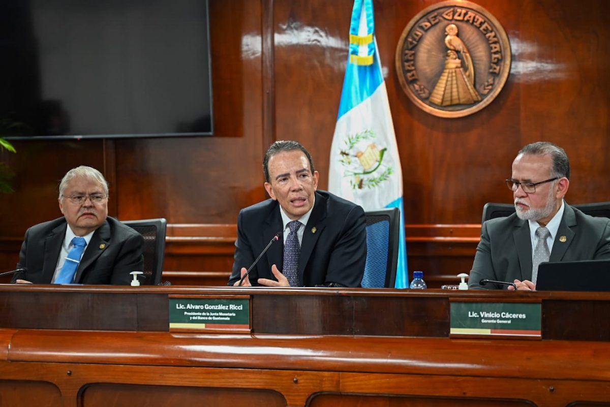 El licenciado Alvaro González Ricci, presidente de la Junta Monetaria y del BANGUAT, dio a conocer a los dos representantes asignados para la Superintendencia de Competencia.
