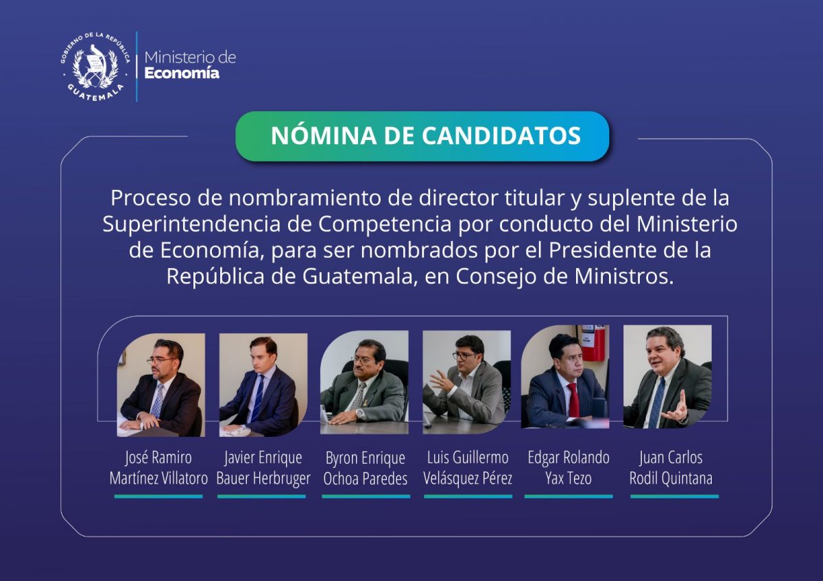 El Presidente de la República, Bernardo Arévalo en Consejo de Ministros deberá nombrar a un director titular y un suplente. La nómina de seis candidatos ya fue publicada por el Ministerio de Economía.