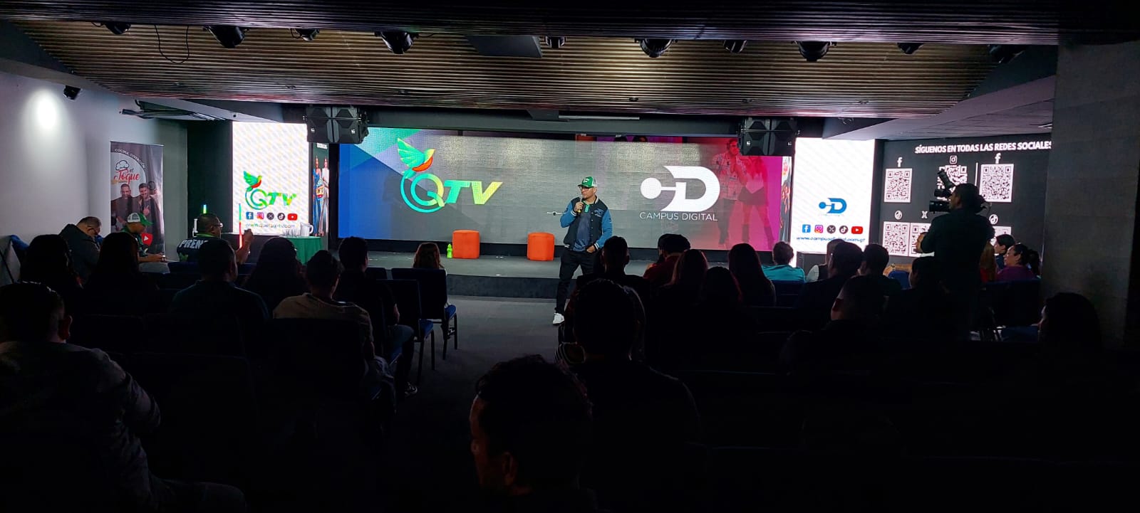 Desde la llegada de los invitados, el ambiente planteó una experiencia inmersiva: pantallas en movimiento, códigos QR, música, un photocall con realidad aumentada y varios espacios para fotografías como el de “Salte del Guacal”. Cada detalle sirvió para introducir el universo digital de los nuevos canales.