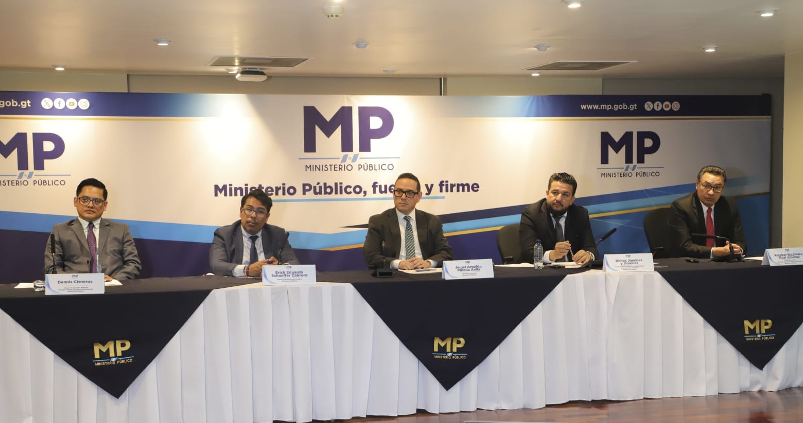 Durante una conferencia de prensa, el secretario general del MP, Ángel Pineda, señaló que “la ley se aplica por igual para todos, sin distinción, y nadie, por alto que sea su cargo, está por encima de la ley”. Afirmó también que las investigaciones en curso no responden a intereses políticos, personales o económicos.