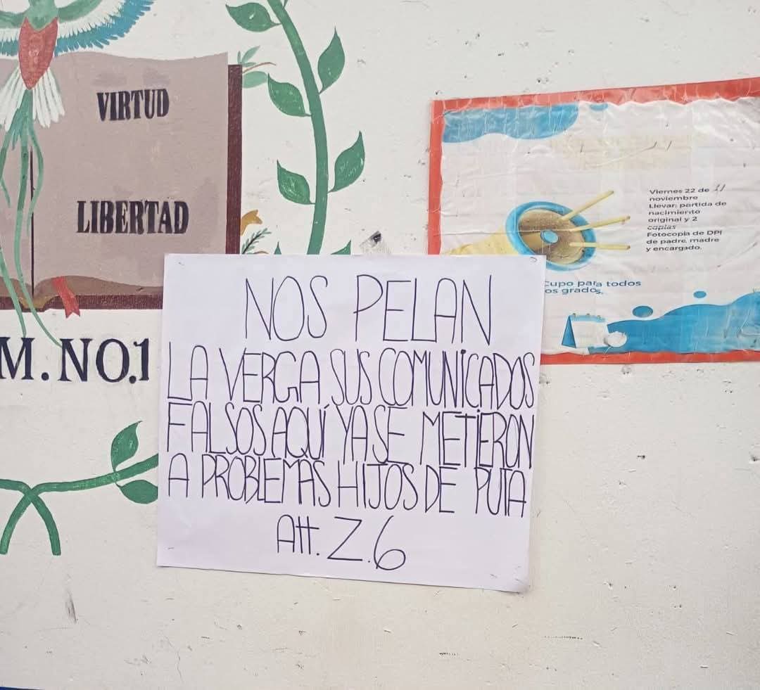 abril 24, 2025El poder llevar a los niños a un centro de estudios se ha vuelto complicado, las extorsiones y amenazas por parte de grupos criminales han generado pánico en las personas que viven en cercanías a la Escuela #150 Asentamiento Roosevelt, de la Colonia Quintanal, en la Zona 6, de la Ciudad Capital.