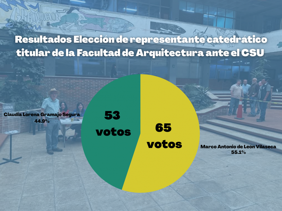 Con 65 votos, el arquitecto Marco Antonio de León Vilaseca fue elegido como representante docente titular ante el Consejo Superior Universitario (CSU) de la Facultad de […]