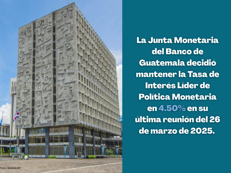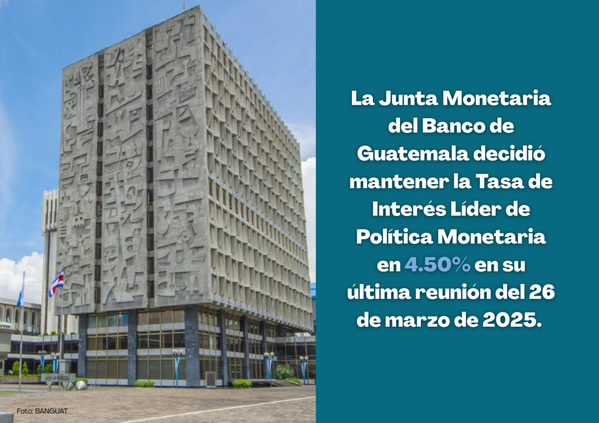 La Junta Monetaria del Banco de Guatemala (BANGUAT) decidió mantener en 4.50% la Tasa de Interés Líder de Política Monetaria, tras evaluar la coyuntura económica interna […]