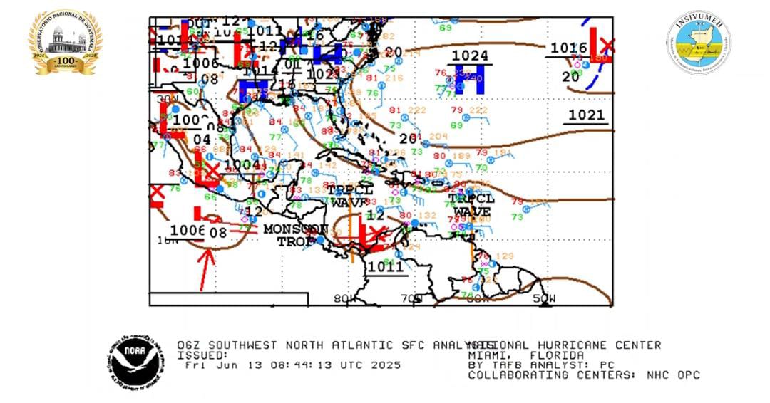 junio 14, 2025El Instituto Nacional de Sismología, Vulcanología, Meteorología e Hidrología (INSIVUMEH) advirtió que durante este fin de semana se prevé un aumento considerable de lluvias en buena parte del territorio guatemalteco, debido al ingreso de una onda del Este.
