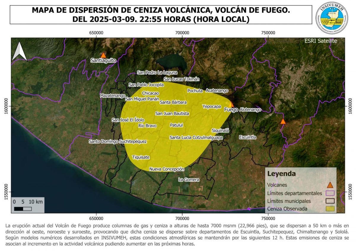 Hasta el momento la CONRED ha reportado caída de ceniza en el municipio de San Miguel Pochuta, Chimaltenango, recomendó a los vecinos utilizar mascarilla y ubicar rutas de evacuación dentro de la comunidad.