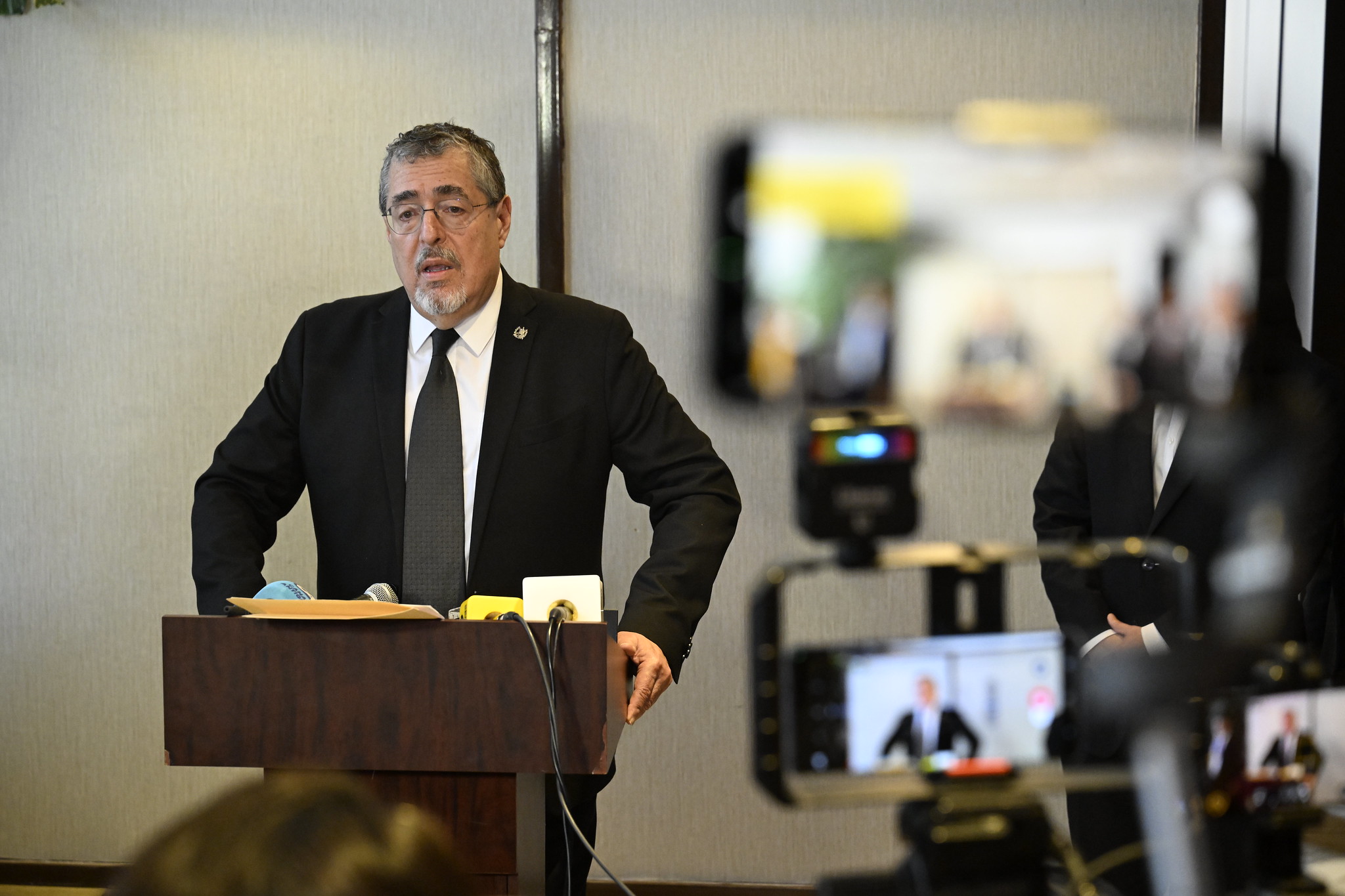 Bernardo Arévalo, Presidente de Guatemala en conferencia de prensa. Foto: Sala de Prensa GOB.