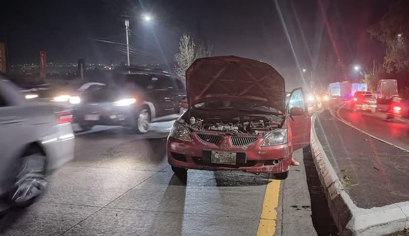 Automóvil con desperfectos mecánicos en la subida de Villa Lobos. Se intenta orillarlo para liberar la vía. Informa PMT de Villa Nueva.