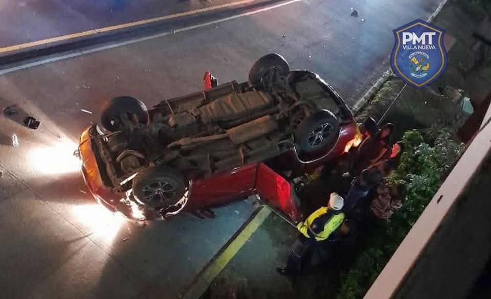 Un vehículo volcó y fue aorillado por la PMT de Villa Nueva tras ser un distractor visual en la vía. Aunque ya no obstruye el paso, el tránsito sigue lento hacia el norte, especialmente debajo de la pasarela del Metro Sur, el vehículo se encuentra en el carril del Transmetro.