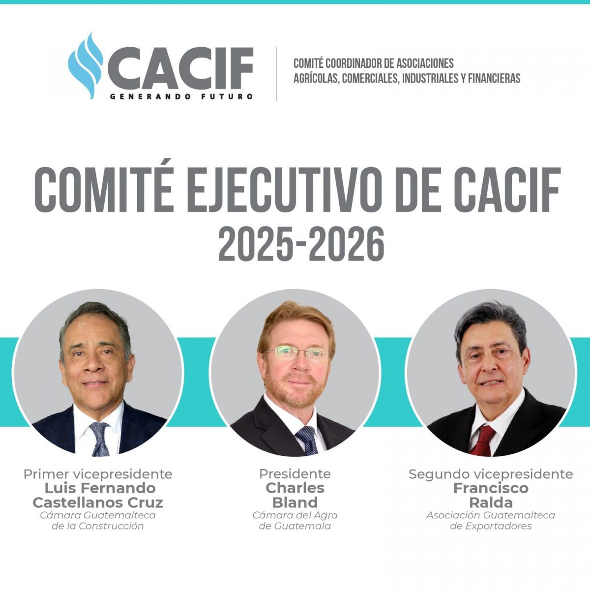 Por otro lado, como primer vicepresidente de Cacif fue electo Luis Fernando Castellanos, presidente de la Cámara Guatemalteca de la Construcción y Francisco Ralda, presidente de la Asociación Guatemalteca de Exportadores (Agexport) como segundo vicepresidente.
