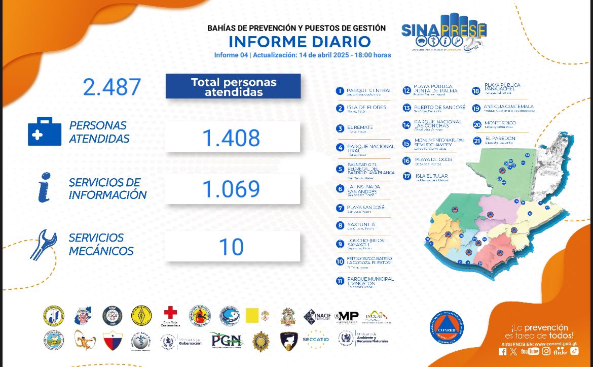 abril 15, 2025Éste lunes 14 el Sistema Nacional de Prevención en Semana Santa (SINAPRESE), presentó su informe diario de las atenciones brindadas en el primer día de activación.