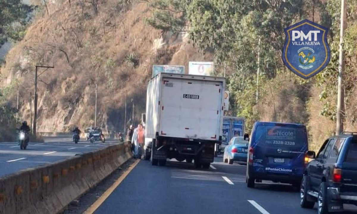 Autoridades del municipio de Villa Nueva indicaron que un camión, por causas que aún se desconocen, se encunetó en el kilómetro 24 de la CA-09 sur.